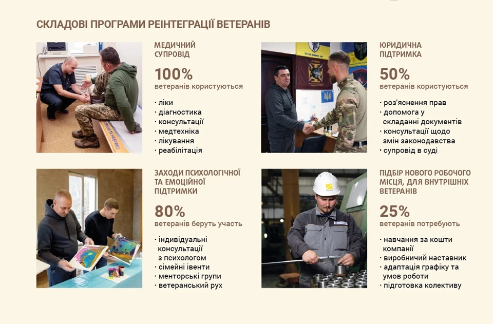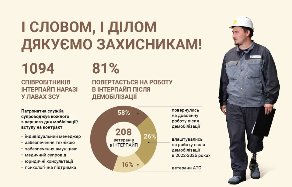 Інтерпайп Віктора Пінчука супроводжує своїх співробітників із першого дня мобілізації з 2014 року. Систему реінтеграції ветеранів почав будувати у 2022 році, коли через кількість ветеранів ситуативних рішень стало мало.